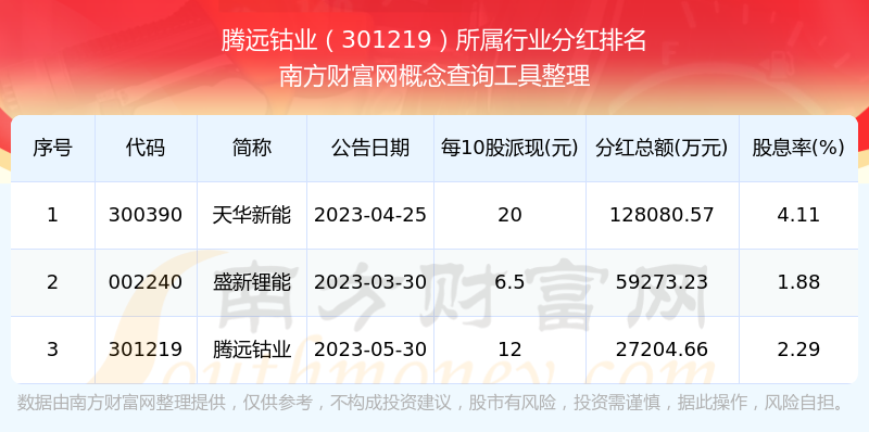 二、騰遠鈷業(yè)301219行業(yè)分紅排名