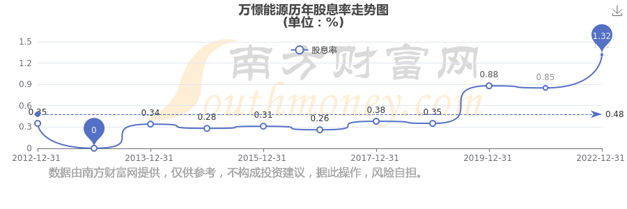 萬憬能源最新一次公布的分紅方案:10派0.6元。
