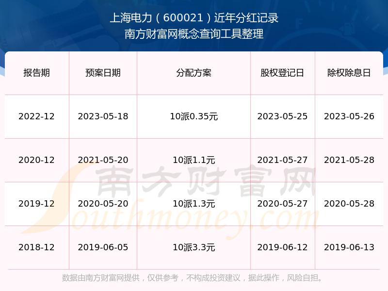 上海電力最新一次公布的分紅方案為10派0.35元。本次權(quán)益分派股權(quán)登記日為2023年5月25日,除權(quán)除息日為2023年5月26日,派息日為2023年5月26日。