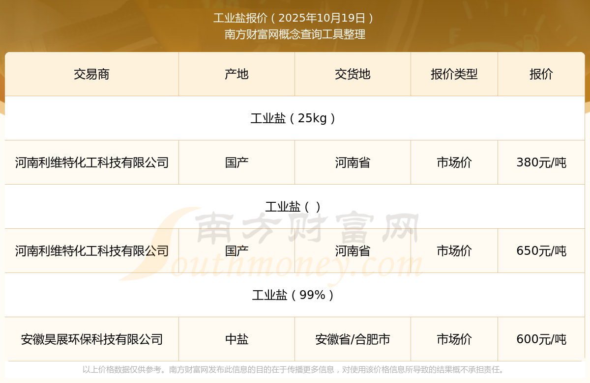 2025年10月19日工業(yè)鹽報(bào)價(jià)行情及近期報(bào)價(jià)走勢(shì)
