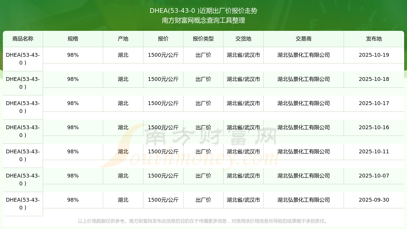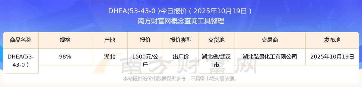 2025年10月19日DHEA(53-43-0 )出廠價(jià)報(bào)價(jià)詳情及近期出廠價(jià)報(bào)價(jià)走勢(shì)