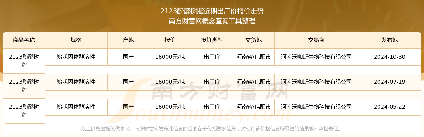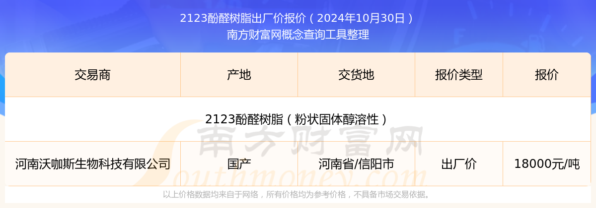 2024年10月30日2123酚醛樹脂出廠價(jià)報(bào)價(jià)詳情一覽表