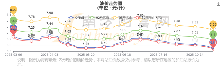 11月4日,青海西寧95號(hào)汽油的價(jià)格為7.29元/升,這是10月28日油價(jià)調(diào)整后的價(jià)格,對(duì)比上一輪油價(jià)調(diào)整時(shí)間10月14日的價(jià)格7.51元每升,跌了0.22元,跌幅達(dá)2.929%。下一輪油價(jià)調(diào)整時(shí)間11月10日24時(shí),距離現(xiàn)在還有6.96天。