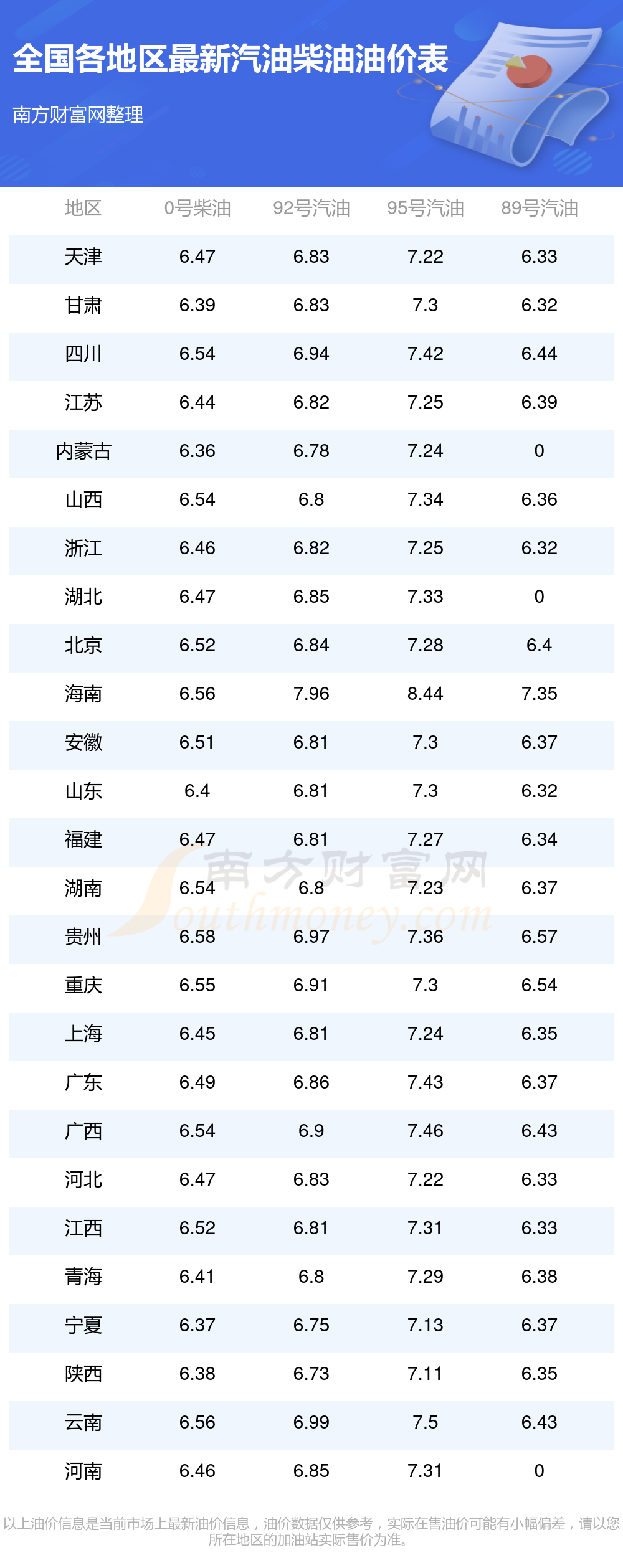 以上油價信息是當(dāng)前市場上最新油價信息,油價數(shù)據(jù)僅供參考,實際在售油價可能有小幅偏差,請以您所在地區(qū)的加油站實際售價為準(zhǔn)。