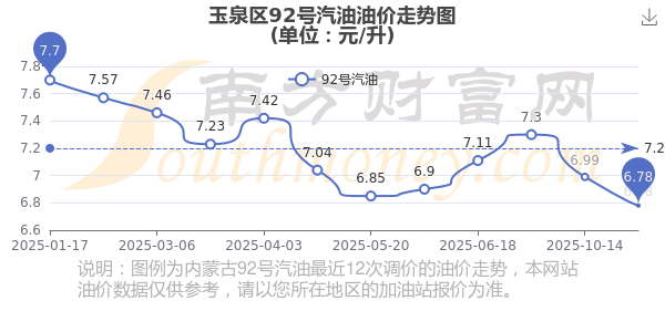 玉泉區(qū)92號汽油歷史油價走勢圖