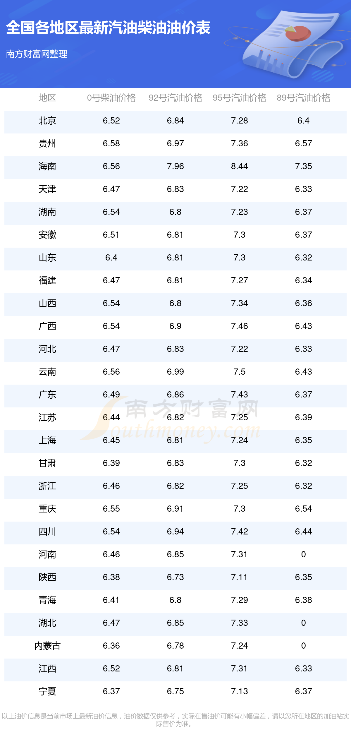 全國(guó)各地區(qū)最新油價(jià)表