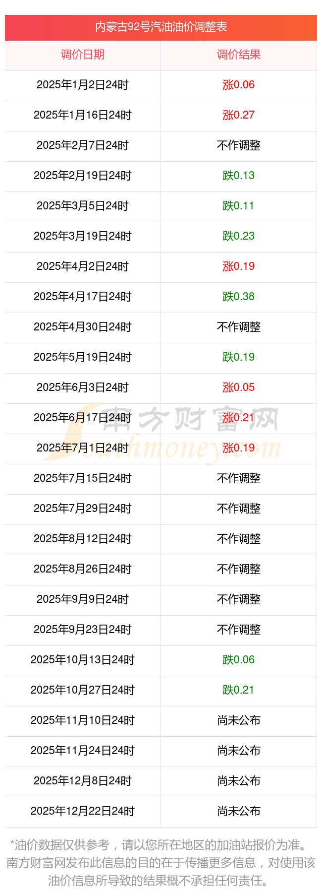 內(nèi)蒙古呼和浩特2025年油價(jià)調(diào)整時(shí)間及價(jià)格表