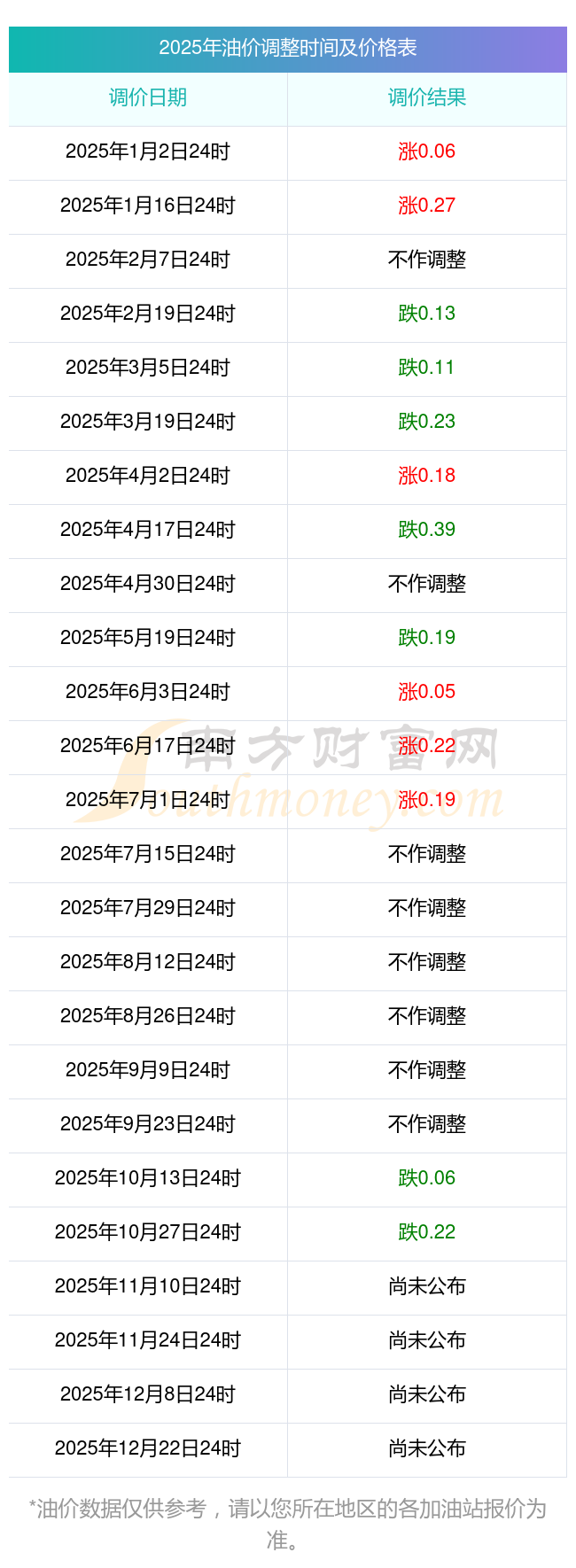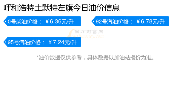 呼和浩特土默特左旗11月6日油價(jià)調(diào)整時(shí)間及價(jià)格表