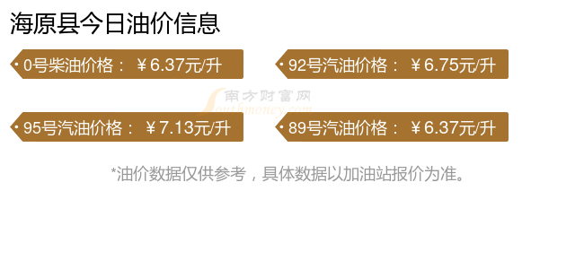 11月6日,海原縣汽油、柴油每升的價(jià)格是多少?本次油價(jià)調(diào)整時(shí)間是10月28日,92號(hào)汽油為6.75元,減了0.21元,減幅達(dá)3.02%;95號(hào)汽油為7.13元,減了0.22元,減幅達(dá)2.99%;89號(hào)汽油為6.37元,減了0.2元,減幅達(dá)3.04%;0號(hào)柴油為6.37元,減了0.22元,減幅達(dá)3.34%。