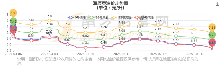 海原縣11月6日0號(hào)柴油歷史油價(jià)調(diào)整走勢(shì)圖