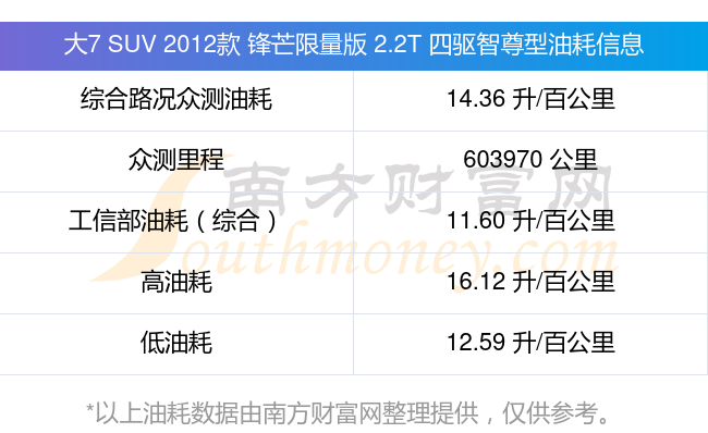 以上油耗數(shù)據(jù)由南方財富網(wǎng)整理提供,僅供參考。