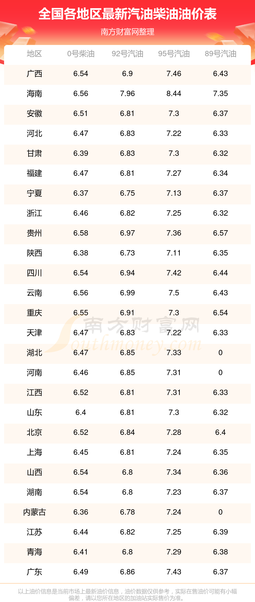 油價數(shù)據(jù)僅供參考,請以您所在地區(qū)的各加油站報價為準。