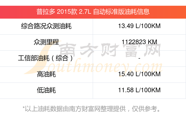 根據(jù)車主實(shí)測數(shù)據(jù),該車型低油耗為11.58L/100km,高油耗為15.40L/100km,綜合路況眾測油耗為13.49L/100km,工信部綜合油耗為-L/100km。