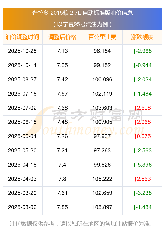按10月28日95號(hào)汽油最新調(diào)整價(jià)格7.13元每升來計(jì)算(以寧夏為例),該車型百公里平均油費(fèi)為96.184元,按上一輪10月14日調(diào)整價(jià)格7.35元每升來計(jì)算,百公里平均油費(fèi)為99.152元,對(duì)比上一輪少花2.968元,下一輪油價(jià)調(diào)整時(shí)間為11月10日24時(shí)。