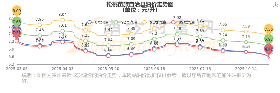 11月6日松桃苗族自治縣92號(hào)汽油歷史油價(jià)走勢(shì)圖