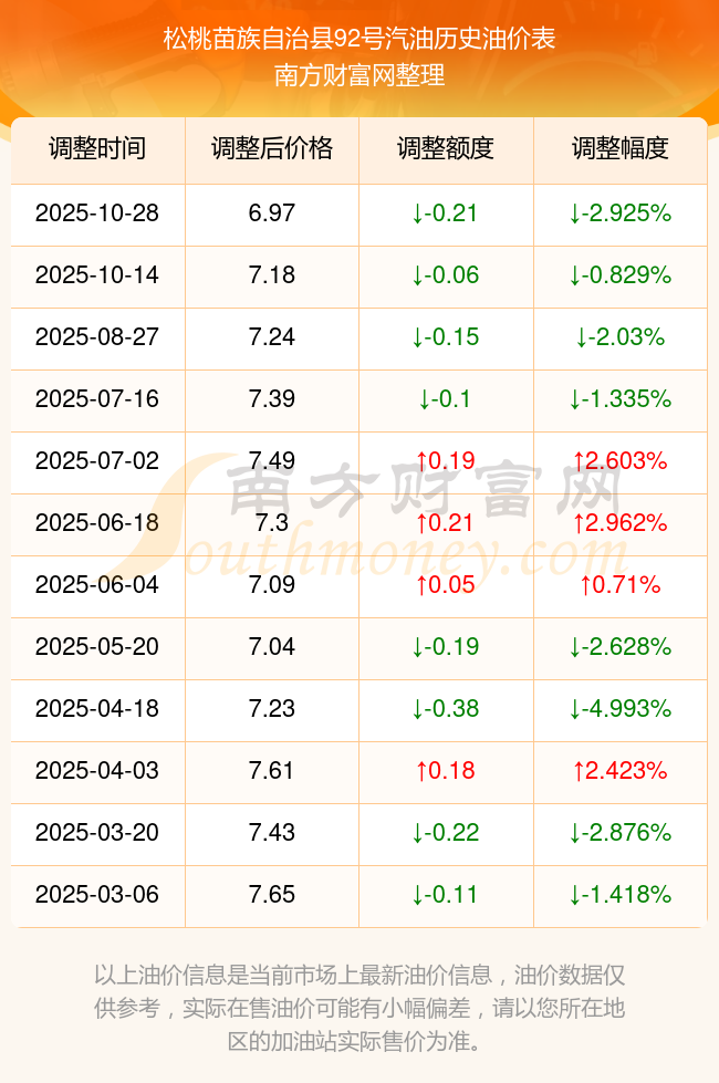 11月6日松桃苗族自治縣92號(hào)汽油歷史油價(jià)一覽表
