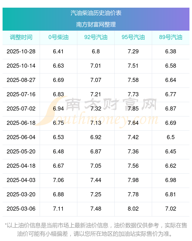 黃南95號汽油11月6日的價格為每升7.29元,本次油價的調(diào)整時間10月28日,對比上次油價調(diào)整時間10月14日的價格7.51元/升,共下跌了0.22元,下跌幅達(dá)2.929%。下一輪油價調(diào)整時間11月10日24時,距離現(xiàn)在還有4.49天。