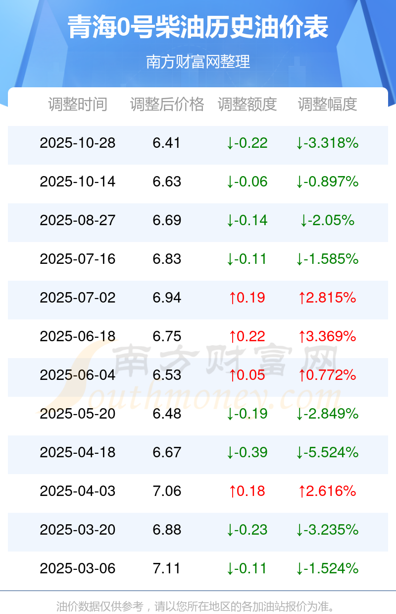 青海0號(hào)柴油油價(jià)調(diào)整表
