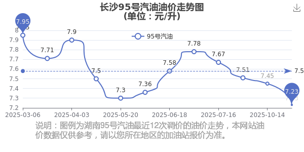 長沙2025年汽油價格調(diào)整走勢圖