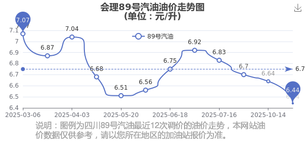 11月7日,會理汽油、柴油每升的價格是多少?本次油價調(diào)整時間是10月28日,92號汽油為6.94元,下降了0.21元,下降幅達(dá)2.94%;95號汽油為7.42元,下降了0.23元,下降幅達(dá)3.01%;89號汽油為6.44元,下降了0.2元,下降幅達(dá)3.01%;0號柴油為6.54元,下降了0.22元,下降幅達(dá)3.25%。