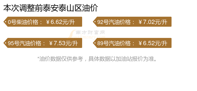 泰安泰山區(qū)11月7日油價(jià)調(diào)整時(shí)間及價(jià)格表
