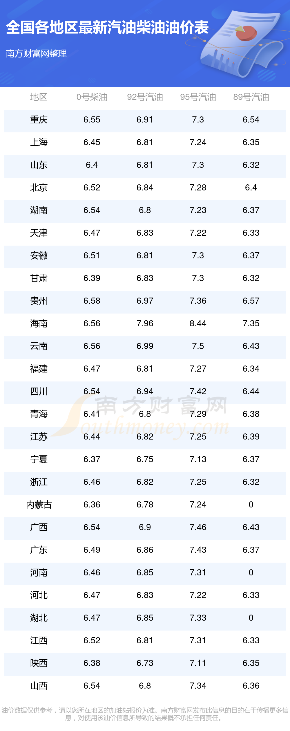本站提供的油價數(shù)據(jù)僅供參考,具體數(shù)據(jù)以加油站報(bào)價為準(zhǔn)。