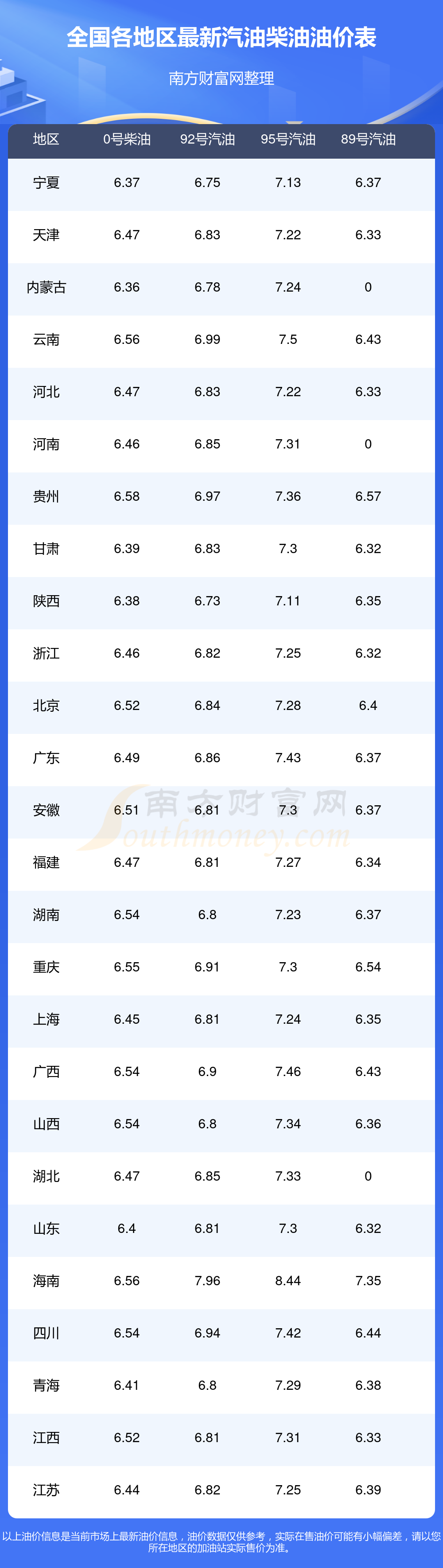 2025年全國各地區(qū)汽油價(jià)格表