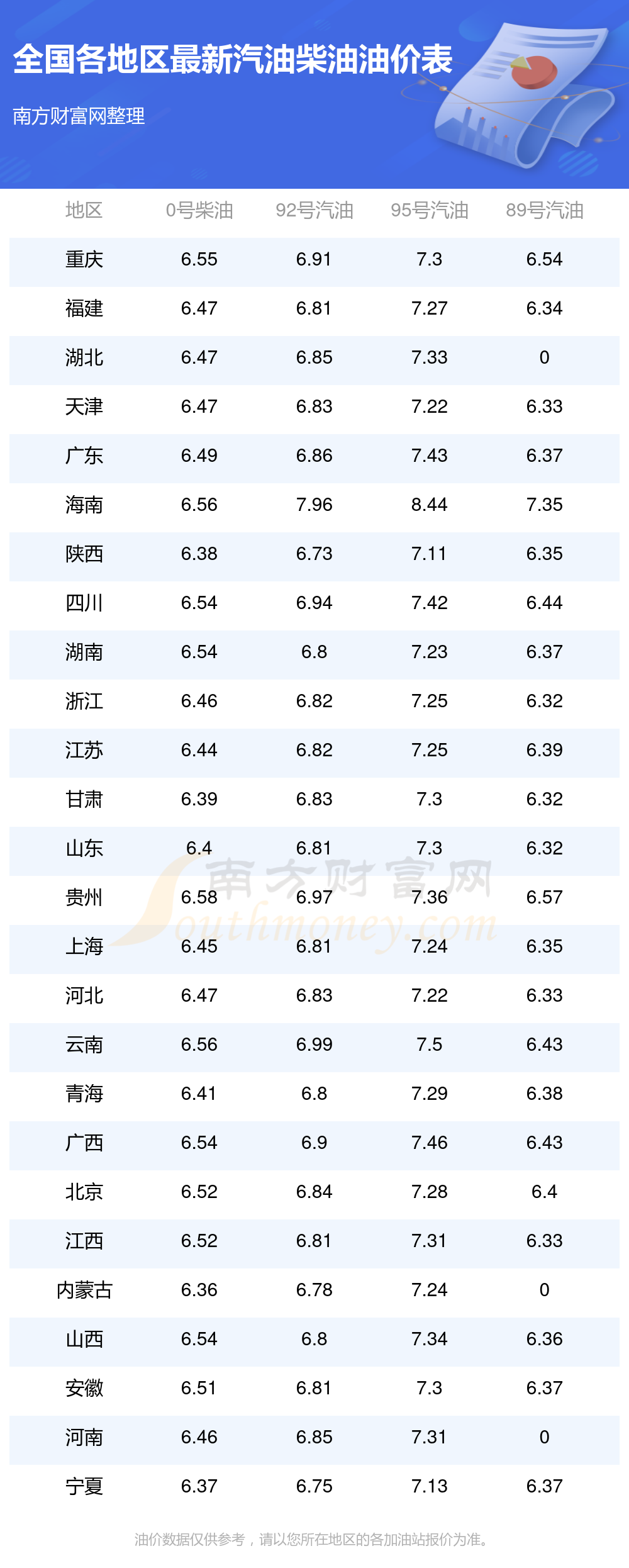 油價(jià)數(shù)據(jù)僅供參考,請(qǐng)以您所在地區(qū)的各加油站報(bào)價(jià)為準(zhǔn)。