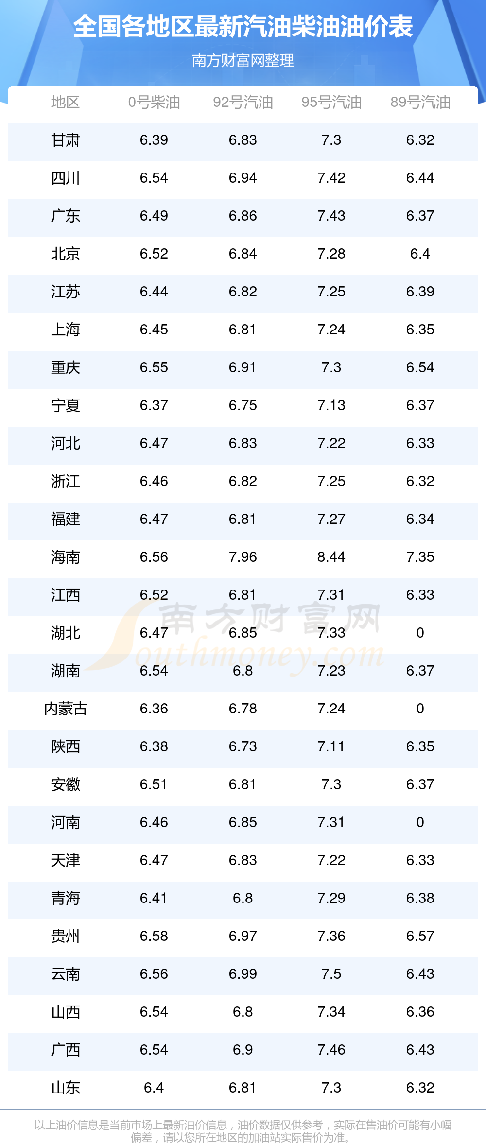 油價(jià)調(diào)整最新消息:本輪油價(jià)調(diào)整時(shí)間為10月28日 ,調(diào)整后全國(guó)油價(jià)詳情為: