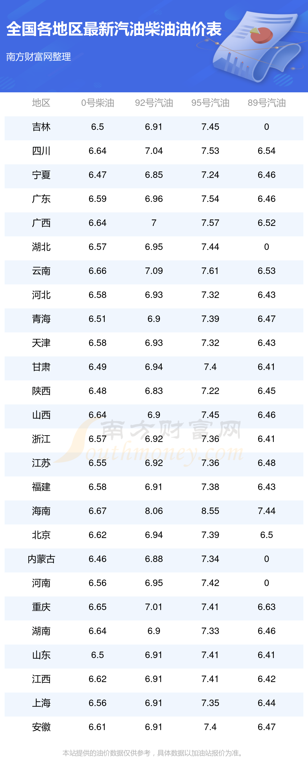 2025年11月11日全國油價(jià)調(diào)整及最新汽油價(jià)格表