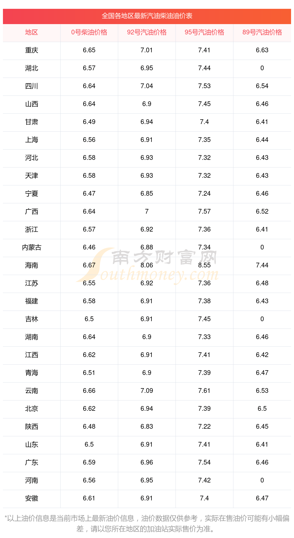 附:最新全國(guó)汽油、柴油價(jià)格一覽表