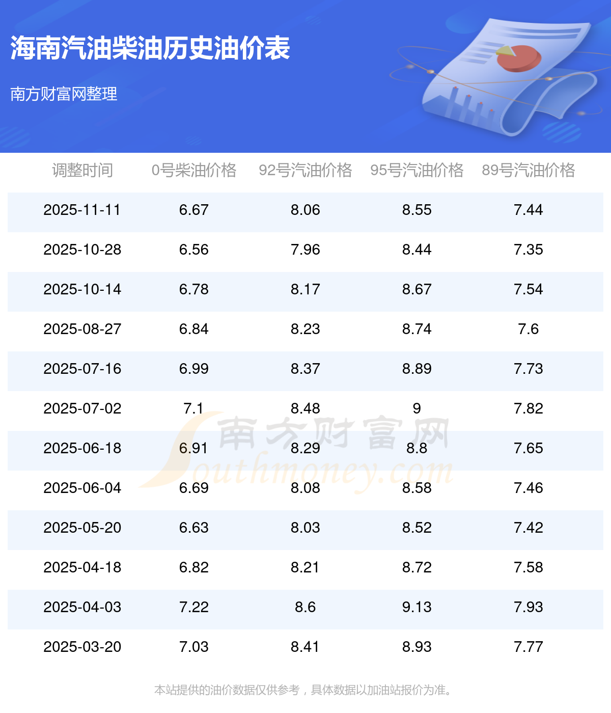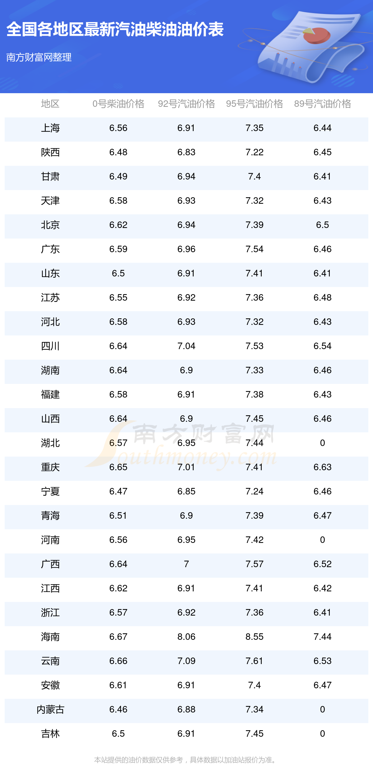 (11月11日)全國(guó)油價(jià)一覽表