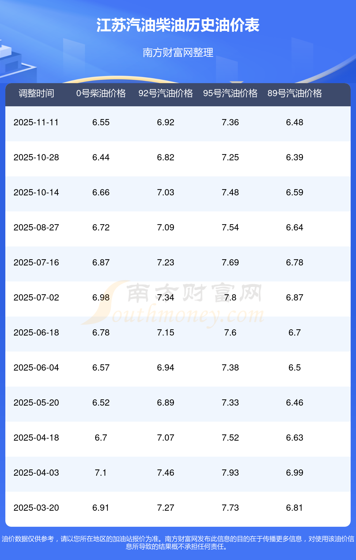2025年江蘇汽油價格一覽表