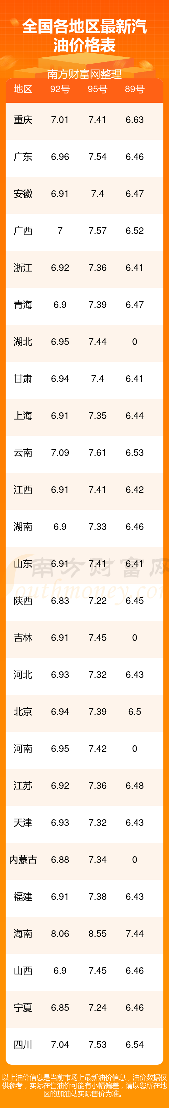 今日汽油價(jià)格一覽表(2025年11月11日)