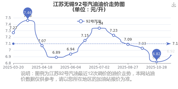 江蘇無錫2025年汽油價(jià)格調(diào)整走勢圖