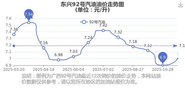 油價調(diào)整最新消息:東興汽油、柴油11月11日每升的價格為11月11日調(diào)整后的價格,具體油價為:92號汽油7元;95號汽油7.57元;89號汽油6.52元;0號柴油6.64元。東興下一輪油價調(diào)整時間11月24日24時,距離現(xiàn)在還有13.33天。