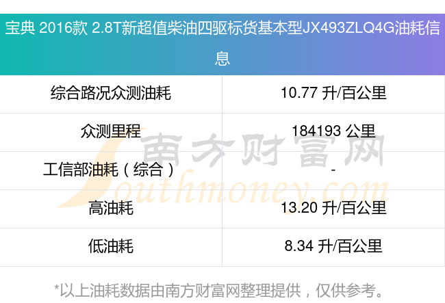 以上油耗數(shù)據(jù)由南方財(cái)富網(wǎng)整理提供,僅供參考。