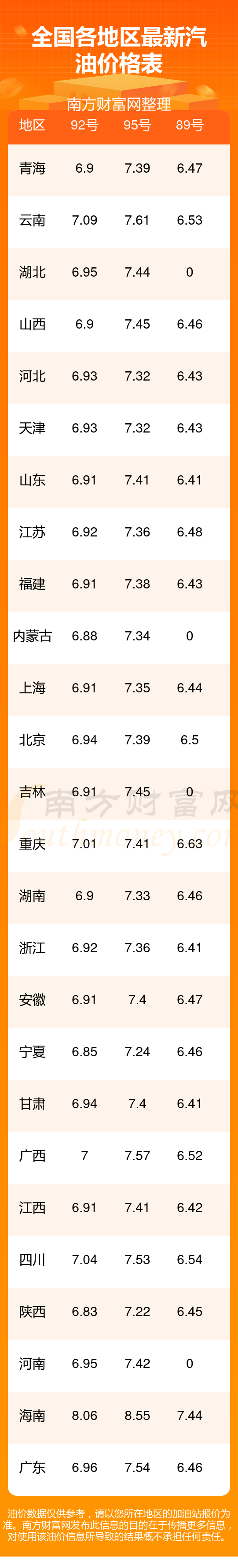 油價數(shù)據(jù)僅供參考,請以您所在地區(qū)的加油站報價為準(zhǔn)。南方財富網(wǎng)發(fā)布此信息的目的在于傳播更多信息,對使用該油價信息所導(dǎo)致的結(jié)果概不承擔(dān)任何責(zé)任。