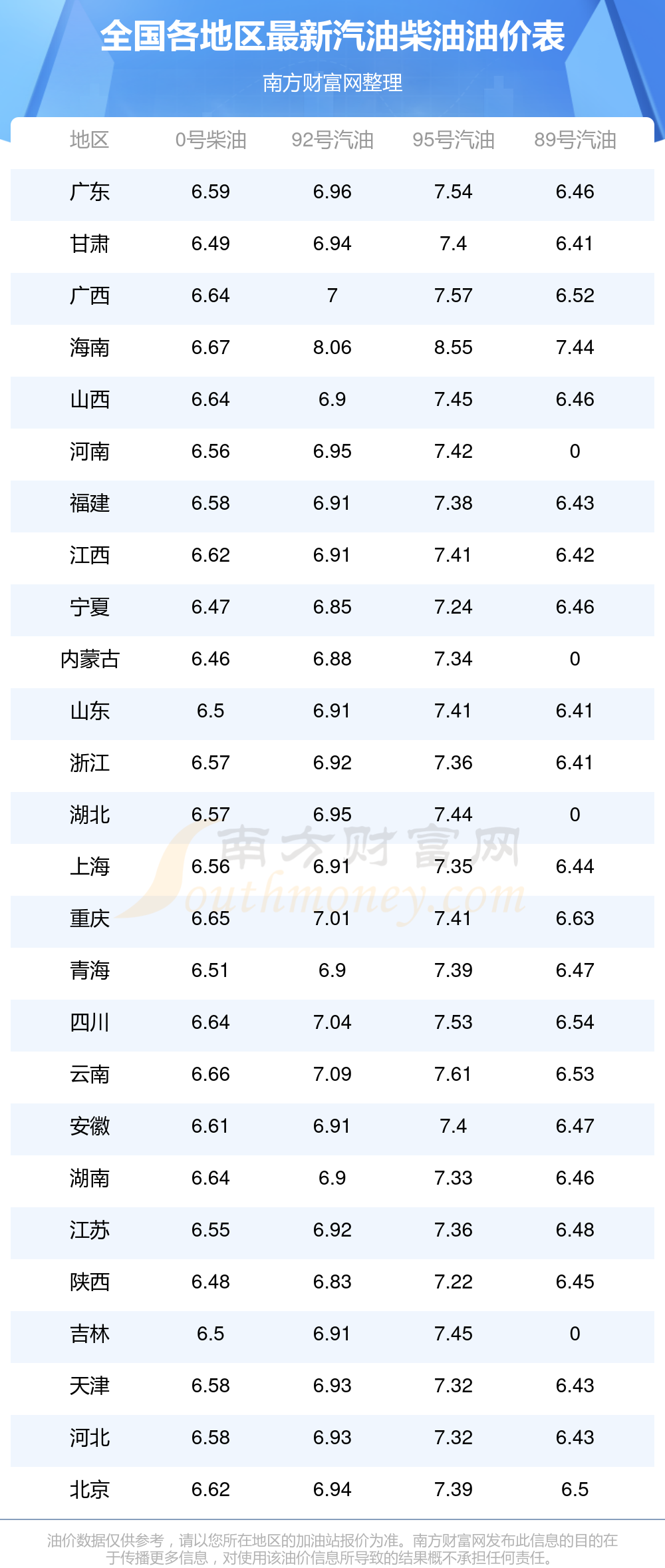 油價(jià)數(shù)據(jù)僅供參考,請以您所在地區(qū)的各加油站報(bào)價(jià)為準(zhǔn)。