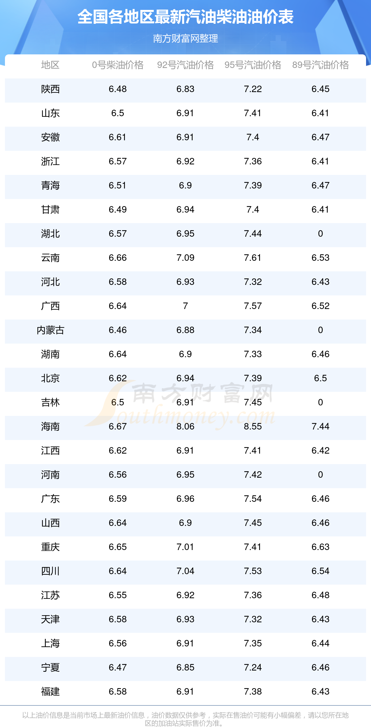 2025年11月11日全國油價(jià)調(diào)整及最新汽油價(jià)格表
