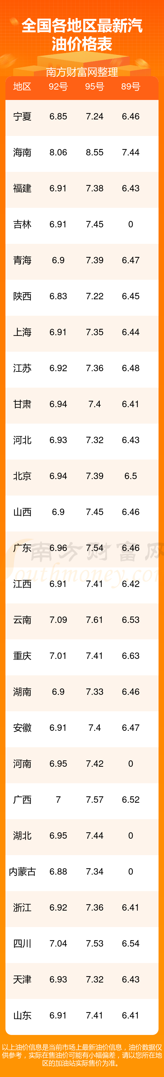 油價(jià)數(shù)據(jù)僅供參考,請以您所在地區(qū)的各加油站報(bào)價(jià)為準(zhǔn)。