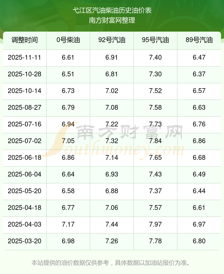 2025年弋江區(qū)汽油價(jià)格一覽表