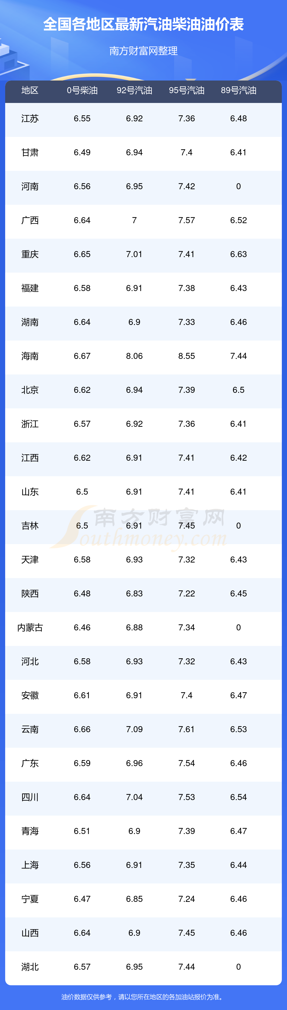 以上數(shù)據(jù)僅供參考,請以您所在地區(qū)的加油站實(shí)際售價為準(zhǔn)。南方財富網(wǎng)發(fā)布此信息的目的在于傳播更多信息,對使用該油價信息所導(dǎo)致的結(jié)果概不承擔(dān)責(zé)任。