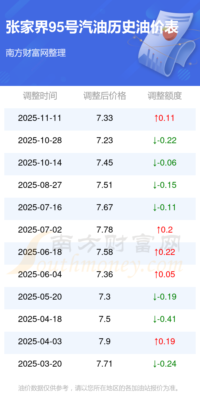 張家界11月11日汽油價格表,今天95號汽油最新價格查詢(11-11)