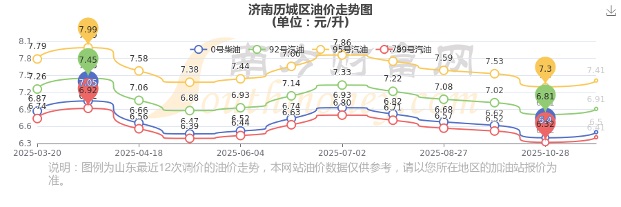 濟南歷城區(qū)11月11日0號柴油歷史油價調(diào)整走勢圖