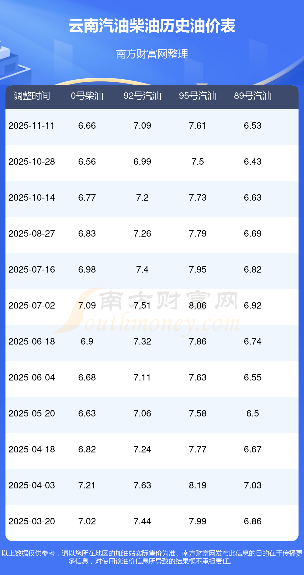 2025年云南汽油價(jià)格一覽表