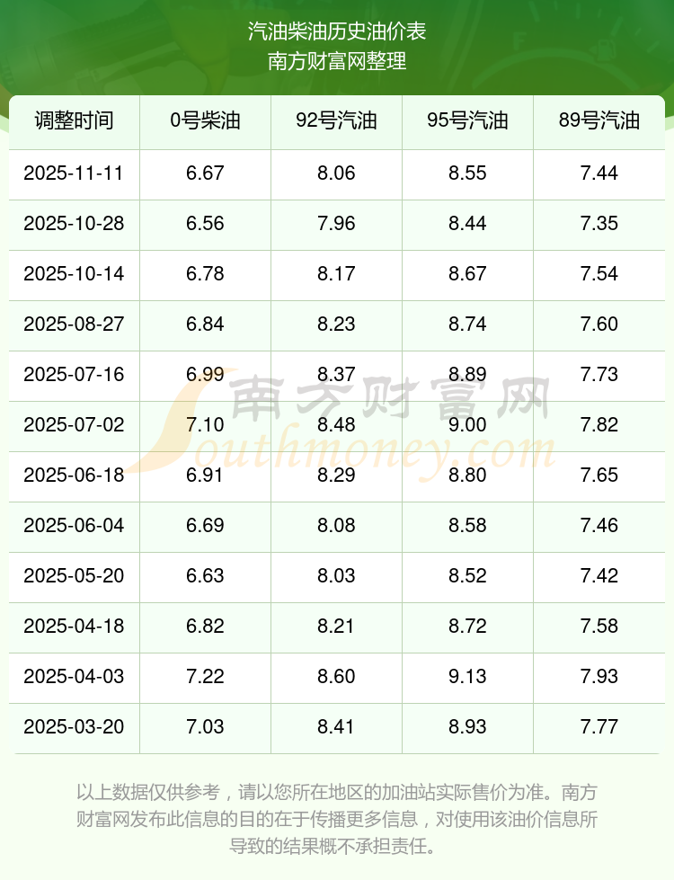 11月油價(jià)調(diào)整時(shí)間:11月10日、11月24日