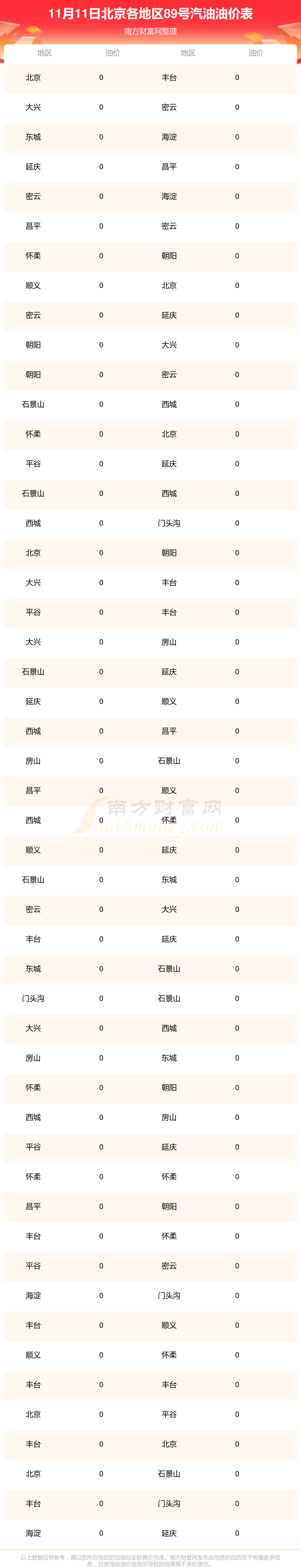 2025年11月11日北京89號汽油最新價(jià)格一覽表