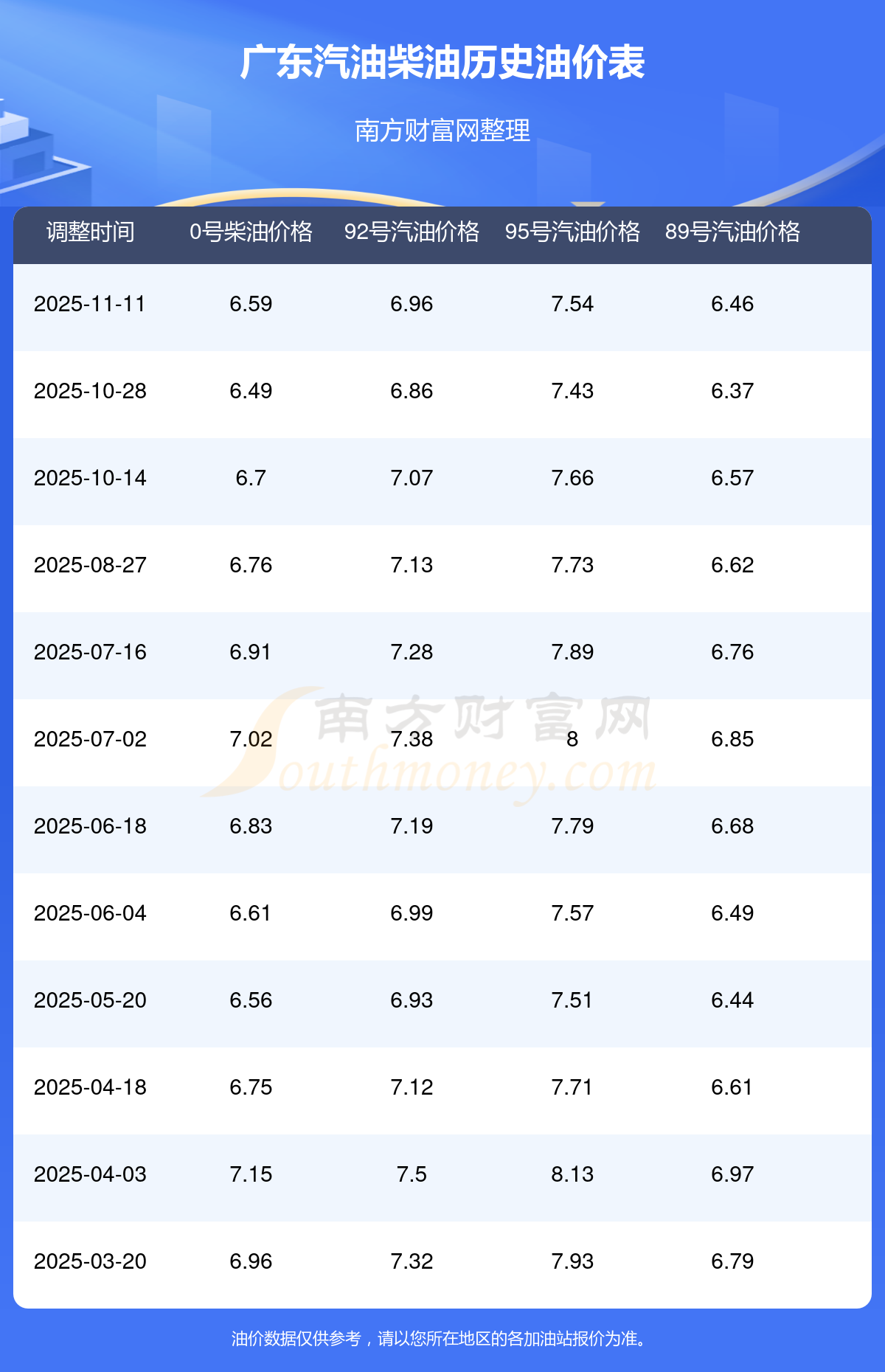 11月11日,廣東0號柴油的價格是6.59元每升,本次的調(diào)整時間為11月11日,對比上次的調(diào)整升了0.1元,升1.541%,11月24日24時為下一輪油價調(diào)整時間,還有13.2天。