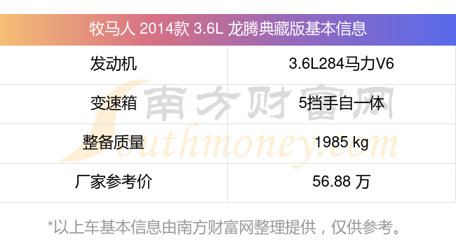 牧馬人 2014款 3.6L 龍騰典藏版動力方面,搭載的是一臺3.6L284馬力V6自然吸氣發(fā)動機,匹配5擋手自一體自動檔變速箱,燃料形式為汽油,常規(guī)整備質(zhì)量1985kg,廠家參考價56.88萬元。